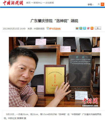 肇慶市端硯協會秘書長王建華指出,一方集魚腦凍、蕉葉白、天青、火捺兼於一體的石品,被古人稱為「蕩」。他稱「洛神硯」呈「天人合一」,雕工既遵循了古今工藝美術之「道」,又有潛在的收藏升值空間。