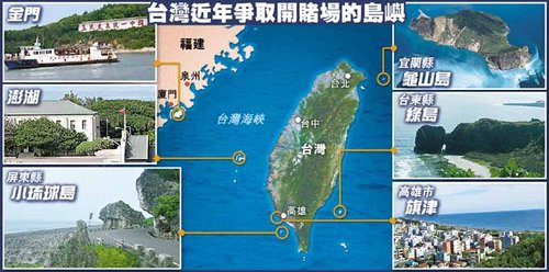 行政院會昨通過《觀光賭場管理條例》草案,賦予離島設置博弈專區的法源依據。交通部長葉匡時表示,若一切順利,最快民國一○八年國內首座合法賭場正式營業。