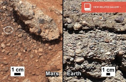 新浪科技訊 北京時間6月3日消息,據國外媒體報導,美國宇航局的“好奇”號火星車在火星上發現了圓形鵝卵石,證明這顆紅色星球上一度有河流存在。這一發現進一步支持了“火星曾出現適居環境”這一理論。圓形鵝卵石只能在被水沖刷併進行長距離移動時才會形成。研究發現刊登在30日出版的《科學》雜誌上。